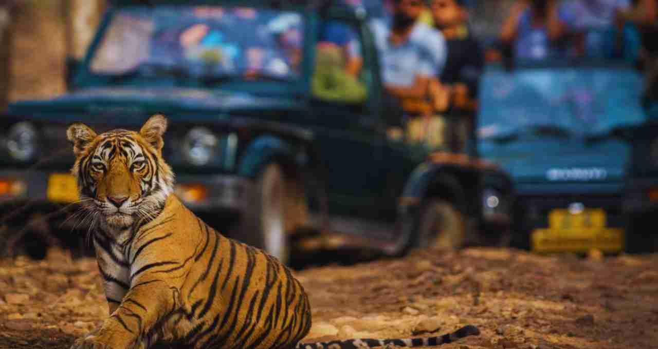 कैंटर और टाइगर के बीच महज कुछ ही मीटर की दूरी थी। गाड़ी में बैठे बच्चे रोने लगे और पर्यटक घबराहट में मोबाइल फोन से वीडियो बनाने लगे। वीडियो में साफ देखा जा सकता है कि टाइगर पूरी तरह आराम से कैंटर के पास बैठा है जबकि अंदर बैठे लोग खामोश और डरे हुए हैं।