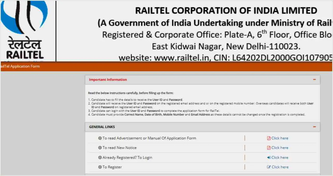 आवेदन करने के लिए उम्मीदवार रेलटेल की आधिकारिक वेबसाइट railtelindia.com से फॉर्म डाउनलोड कर सकते हैं। फॉर्म को सावधानीपूर्वक भरकर आवश्यक दस्तावेजों के साथ RailTel Corporation of India Limited, Plate-A, 6th Floor, Office Block-2, East Kidwai Nagar, New Delhi – 110023, India पर डाक के माध्यम से भेजना होगा।