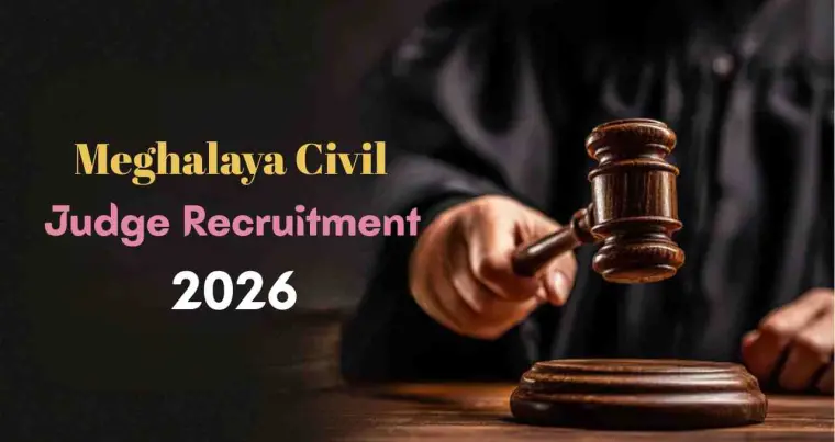 Meghalaya Civil Judge Recruitment 2026: मेघालय में न्यायिक सेवा में करियर बनाने के इच्छुक कानून स्नातकों के लिए सिविल जज (जूनियर डिविजन) पदों पर आवेदन का मौका दिया गया है। इस भर्ती के तहत योग्य भारतीय नागरिक, जिनके पास मान्यता प्राप्त विश्वविद्यालय से एलएलबी डिग्री है, निर्धारित आयु सीमा के भीतर ऑनलाइन आवेदन कर सकते हैं। चयन प्रक्रिया प्रारंभिक परीक्षा, मुख्य परीक्षा और इंटरव्यू के माध्यम से पूरी की जाएगी। आवेदन प्रक्रिया पूरी तरह ऑनलाइन है और उम्मीदवारों को आधिकारिक वेबसाइट पर जाकर फॉर्म भरना होगा।