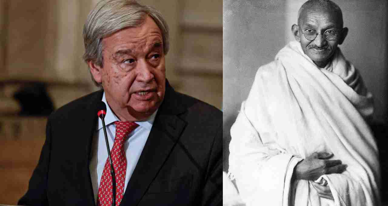 गुटेरेस ने यह संदेश संयुक्त राष्ट्र में भारत के स्थायी मिशन द्वारा दो अक्टूबर को आयोजित अंतरराष्ट्रीय अहिंसा दिवस के अवसर पर एक विशेष स्मृति समारोह में दिया। उन्होंने कहा कि इस दिन हम महात्मा गांधी के जीवन और उनके शांति, सत्य और सम्मान के प्रति अटूट समर्पण को याद करते हैं। उनके अनुसार, गांधी केवल आदर्शों की बात नहीं करते थे बल्कि उन्हें अपने जीवन में अपनाते भी थे।