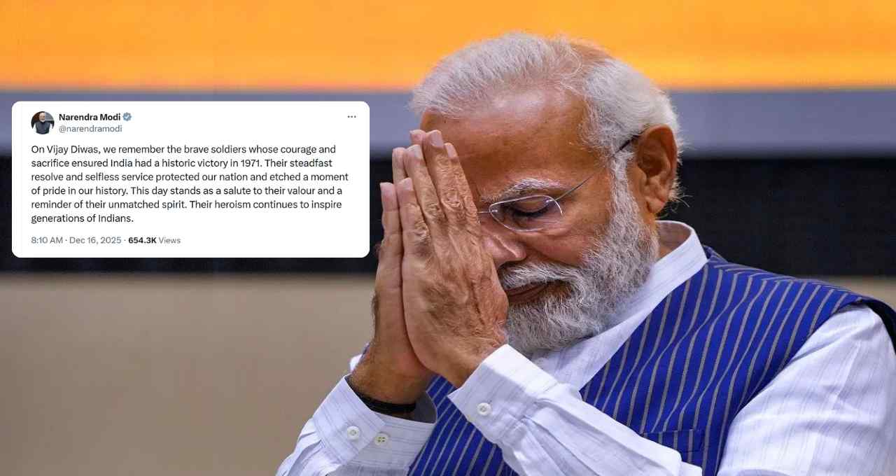 प्रधानमंत्री नरेंद्र मोदी ने भी विजय दिवस पर भारतीय सैनिकों को श्रद्धांजलि अर्पित की। उन्होंने एक्स पर लिखा कि इस अवसर पर हम उन बहादुर सैनिकों को याद करते हैं, जिनके साहस और बलिदान ने 1971 में भारत को ऐतिहासिक जीत दिलाई।