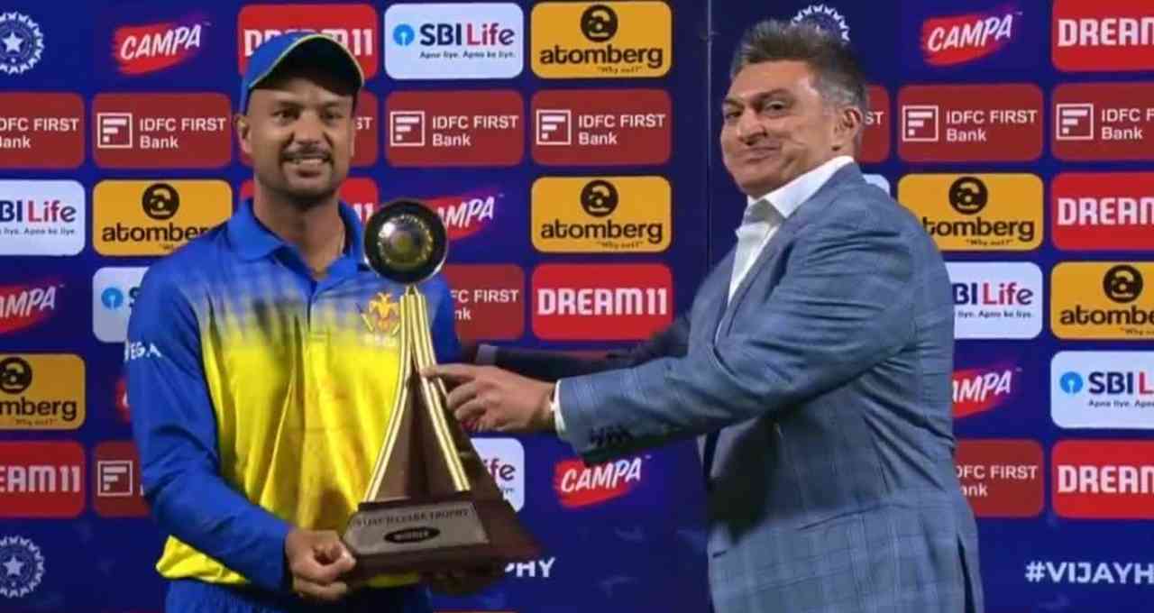 शानदार प्रदर्शन के लिए अथर्व तायडे को प्लेयर ऑफ द मैच जबकि पूरे टूर्नामेंट में निरंतर उत्कृष्ट खेल के लिए अमन मोखाड़े को प्लेयर ऑफ द सीरीज चुना गया।