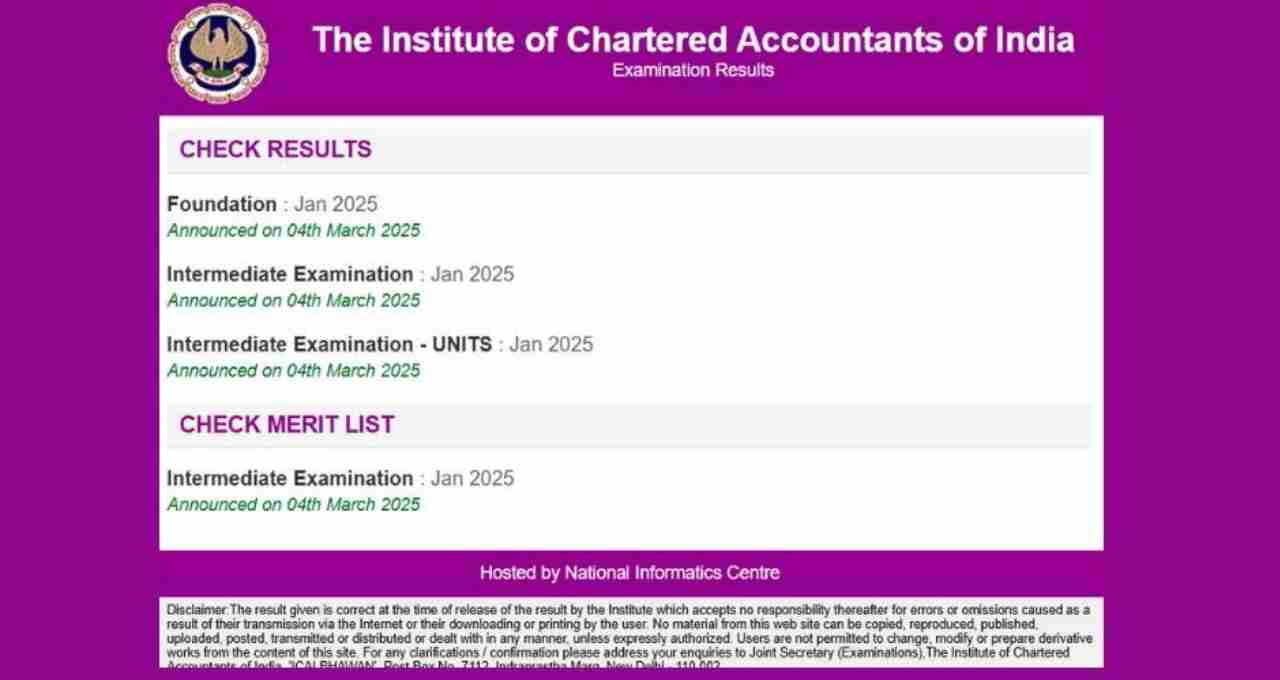 - गृहपृष्ठमा “CA Final/Intermediate/Foundation Result 2025” को सक्रिय लिङ्कमा क्लिक गर्नुहोस्।
